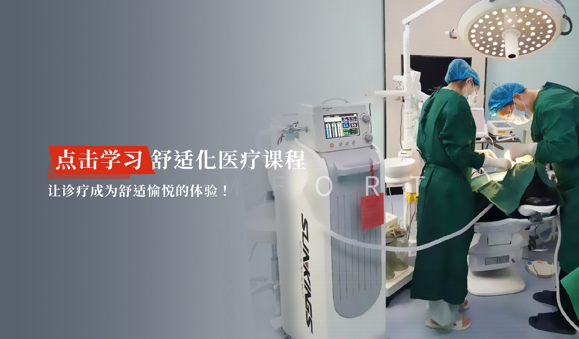 舒適醫療是讓患者在沒有痛苦和恐懼的環境下就診、檢查及治療,使就醫成為一個愉快和舒適的過程